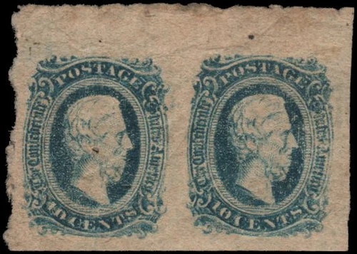 1863 USA 10c Civil War Confederate Stamp - CSA12 - MH, with Gum - Solid
