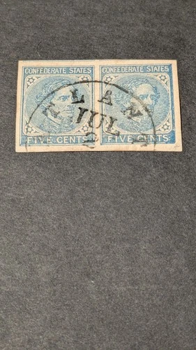 U.S. Confederate Stamp #7 Extra Fine Used Pair, Atlanta Cancel, Jumbo Margins