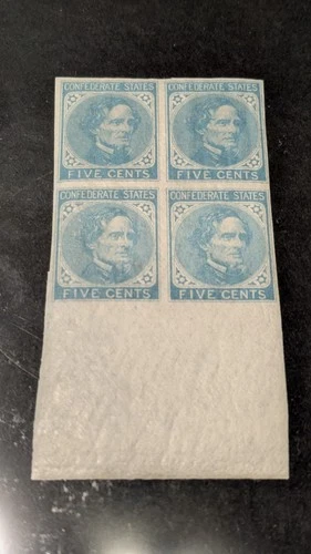 U.S. Confederate Stamp #6 Very Fine Mint Never Hinged Block Of Four, Very Fresh!