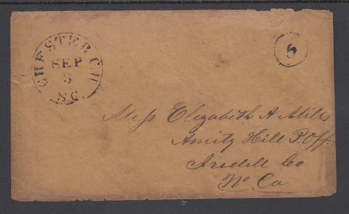 CSA, 1861 Stampless Cover CHESTER, SC to AMITY HILL, NC - 5c Rate, unpaid