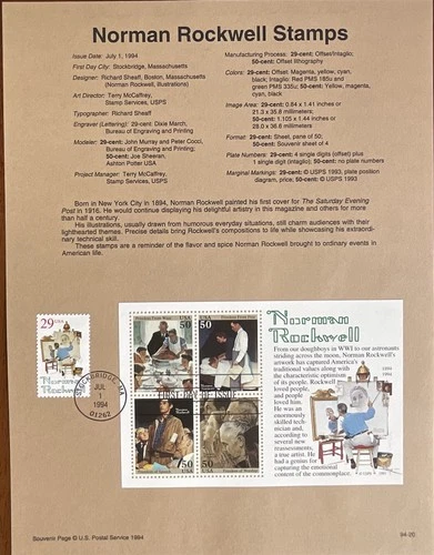 USPS Souvenir Page 2839 2840 Norman Rockwell Stamps 7/1/94