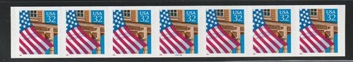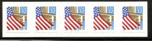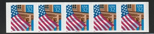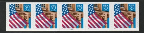 US Scott 2915 32c Flag Over Porch PNC strip of 5, plate number V11111