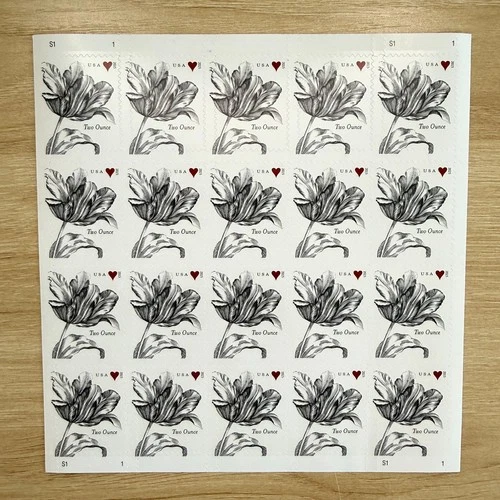 100 Vintage Engraved Tulip 2 Oz Forever Stamps USPS | Scott #5002 MNH | 5 Sheets