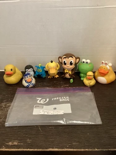 110-Bag Of 10 Rubber Ducks And Other Animals Frog,Monkey & More
