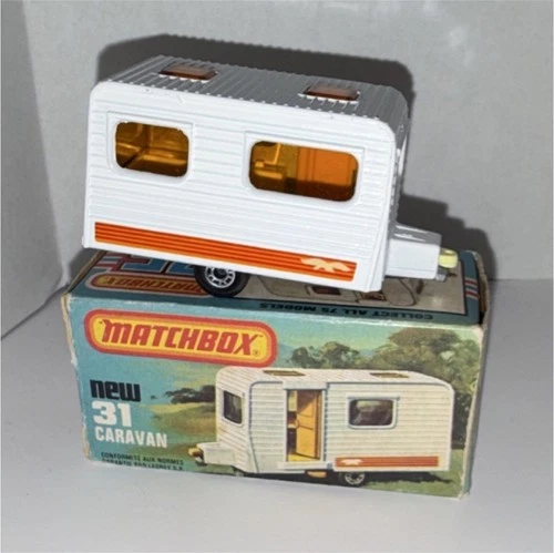 Matchbox No. 31 Caravan 1:64 Diecast White Orange Vintage Model with Box