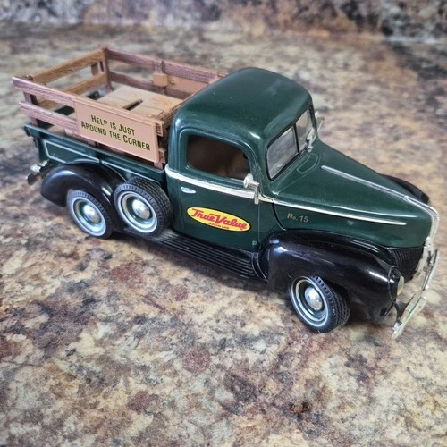 VTG 1996 ERTL 1940 Ford Pickup Truck Green True Value w/ Coin Bank Crate Load