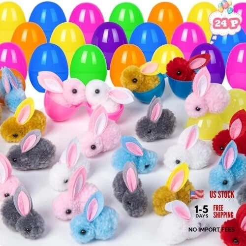 24 Pack Easter Egg Fillers Plush Bunny Toys, Mini 24P Easter Eggs Fillers