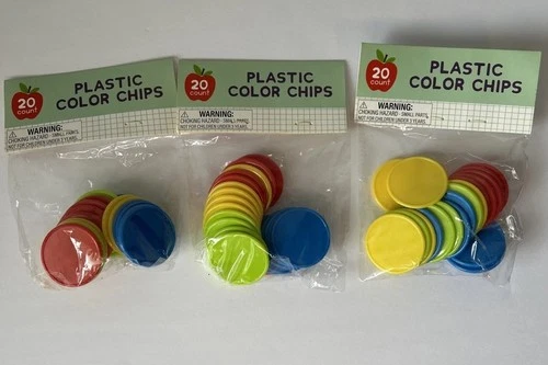 Plastic Color Chips 3 Packs (60 total chips) Multicolor NEW Classroom School