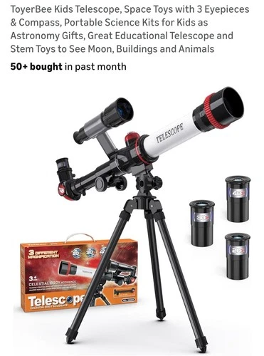 ToyerBee Kids Telescope with 3 Eyepieces & Compass, Astronomy Toy Science Kit
