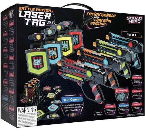 Squad Hero Rechargeable Laser Tag 360° Sensors + set of 4 Open Box