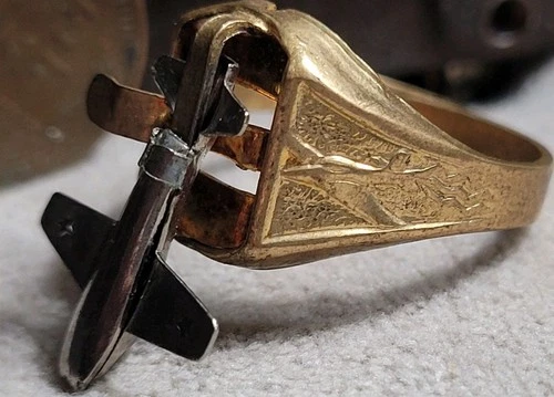 RARE Vintage 1948 F-87 Jet Fighter Ring Kellogg's PEP cereal Gold Plated
