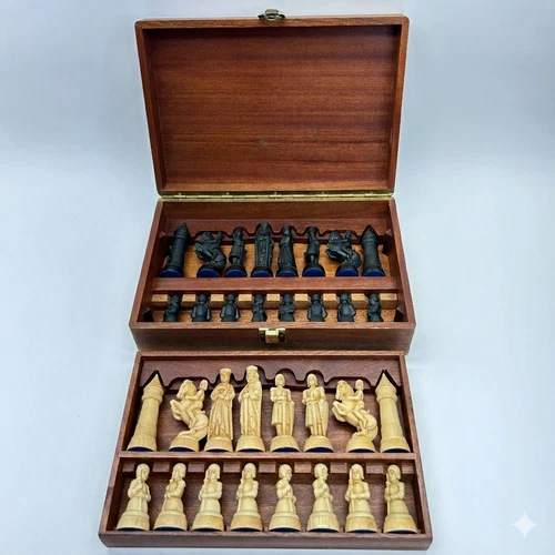 Vintage Anri Toriart Charlemagne Italy Medieval Crusader Knight Chess Set