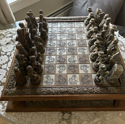 Vintage Rare Cowboy & Indian Chess Set Wood & Resin - READ