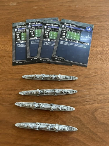 Axis Allies War at Sea CUSTOM BASE SET HMAS Sydney 2/64 with card Lot Of 4