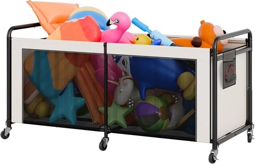 295-gallon pool float storage box, mesh pool toy storage box, beige
