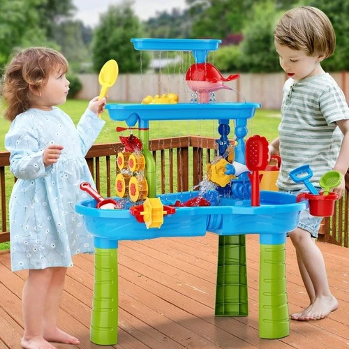 3-Tier Kids Sand Water Table Play Set Outdoor Summer Beach Activity Toy Blue