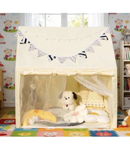 Play Tent with 2 Built-In Storage Organizers Star Lights Flags & Play Mat Kids