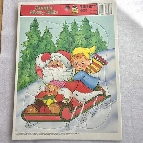 VTG 1993 Golden Books Santas Merry Ride Frame Tray Puzzle Christmas Retro 12 pc