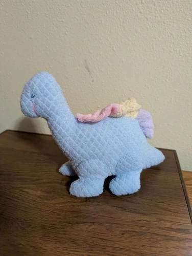 Vtg Eden Blue Pastel Dinosaur Plush Stuffed Rattle Blanket Lovey Minky Animal