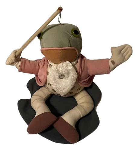 Eden Jeremy Fisher Frog Vintage Stuffed Plush on Lilly Pad Music Box 1970’s USA