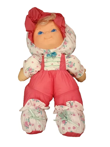 Vtg Fisher Price Puffalump Kids Girl Baby Doll Pink Overalls Blonde Flowers EUC