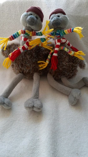 Two Gund BRRRDY 8819 winter ostrich scarves, stocking caps, feather look a-likes