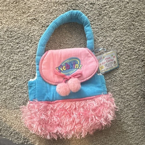 Ganz Webkinz Pet Carrier Plush Blue Pink Corduroy Purse Pre-owned