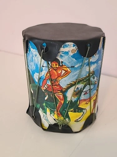 Vintage Drum Tom Tom Souvenir Toy Native American Indian Made in USA Cardboard