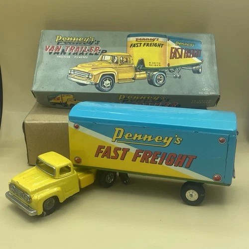 Vintage Penneys Fast Freight Van Trailer Tin Friction Truck ASC Japan w Box