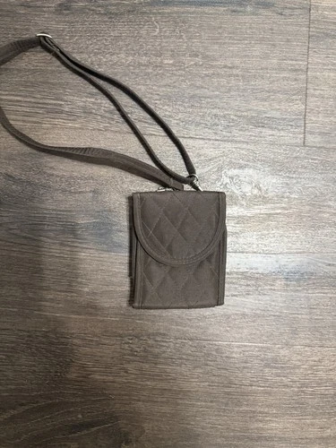 Brown Quilted Neck Pouch Travel Passport & ID Holder with Neck Strap