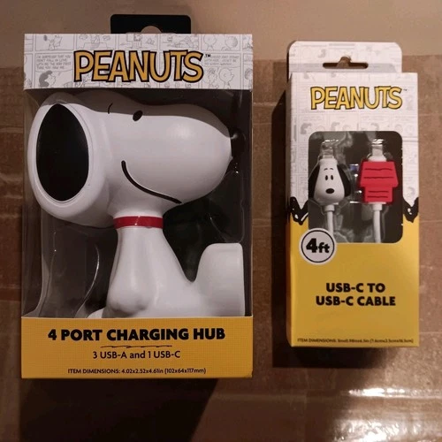 Peanuts Snoopy 4 Port Charging Hub & Woodstock USB-C To USB-C Charging Cable