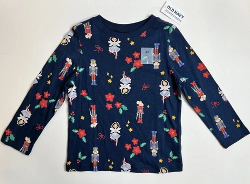 Old Navy Kids Christmas Shirt 2T L/S Top Nutcracker Ballerina Poinsettia NWT NEW