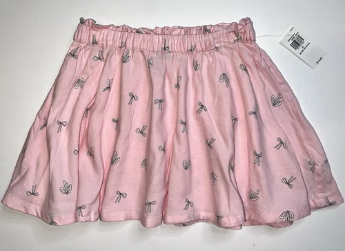 Old Navy Girls Pink Skirt Size 4T Bow Print Kids Flared Skater Elastic Waist NWT