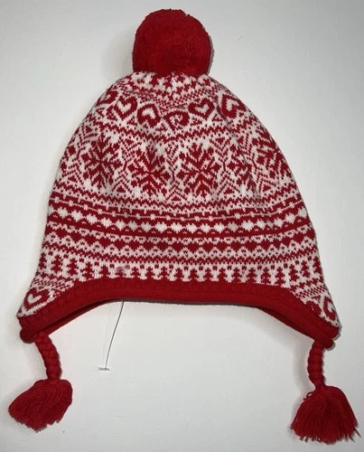 Max Studio Baby Fair Isle Hat Sz 6-9 Mon Red White Pom Pom Christmas Winter NEW