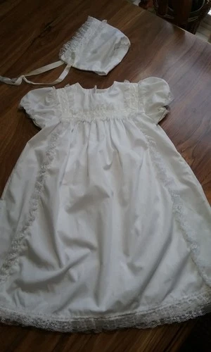 Vintage Alexis Baby Girl 12 MOS White Baptism Christening Gown & Bonnet USA