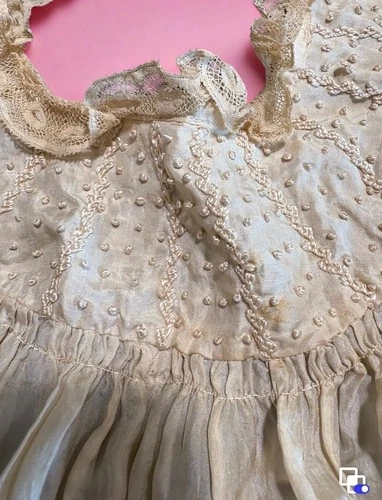 Antique Swedish Christening Gown Set Lace Cotton Baby Dress Slip 0-6 months