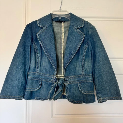 Banana Republic Vintage Y2K 2005Tie Bow Denim Jacket Boho Hippie Size 4 Stretch