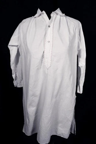 Vintage 1920's French White Cotton Boy's Night Shirt 10 Year Very Good Condition