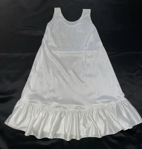Vintage Long Full Slip Girls Small S Ivory Lace Nylon Ruffled Bottom