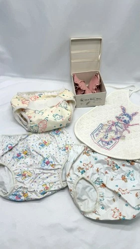 Vintage Baby Lot – Training Pants, Bib & Baby Shoes Diaper Cover Vinyl Plastic