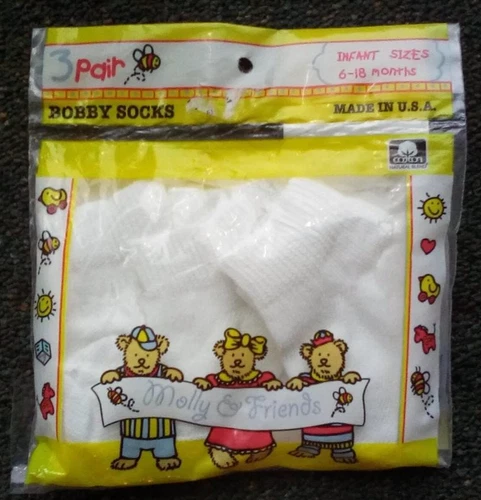VTG MOLLY & FRIENDS 3 PAIR INFANT 6-18 MO BOBBY SOCKS USA NOS