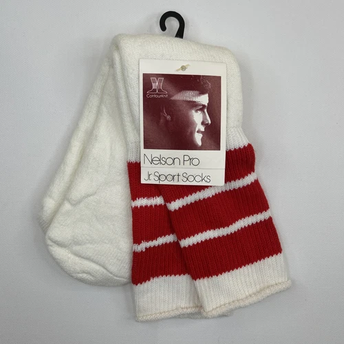 VTG Youth Socks 80s Nelson Tube Red Striped Over Calf 6-8 NOS Orlon Acrylic USA