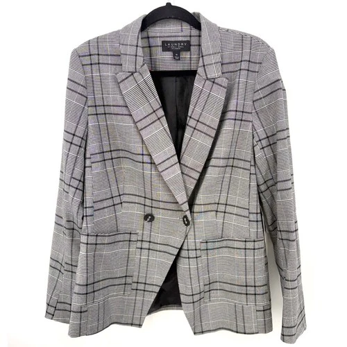 NWT Laundry Shelli Segal Plaid Suit Jacket Grey Check Career Blazer Size 12