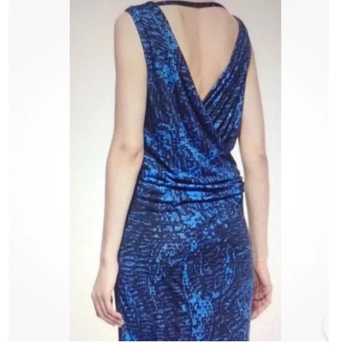 Helmut Lang Dress Y2K Small Sleeveless Sheath Blue snakeskin Print V-Neck