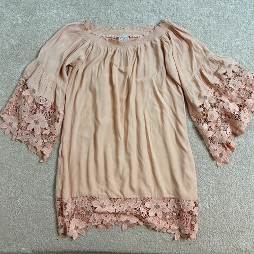 Muche et Muchette Jolie Lace Accent Bohemian Boho Dress Blush Pink Size M/L