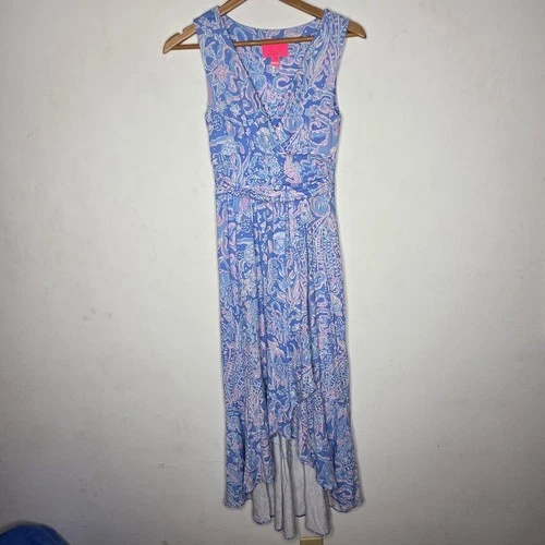 Lilly Pulitzer Dress Moana Maxi High-low Amalfi Blue Sound the Sirens Mermaid XS