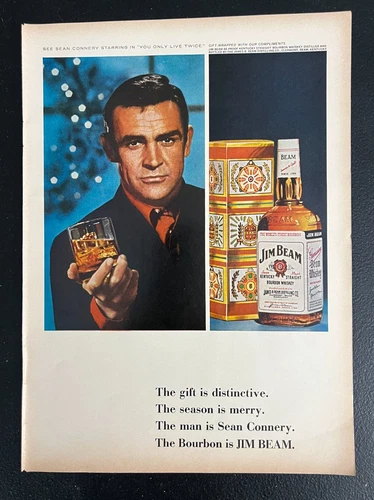 Sean Connery Jim Beam Whiskey 1966 Magazine Print Ad James Bond 8" x 11"
