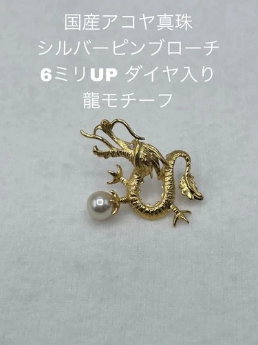 Akoya Pearl Silver Brooch Dragon Motif 6mm UP Diamond Accessories Used