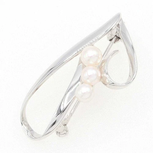 Mikimoto Pearl Brooch Silver Used Engraved Pin Jewelry Accessories