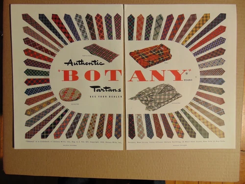 1950 BOTANY TARTANS NECKTIES vintage art print ad